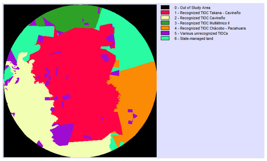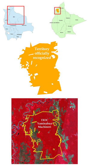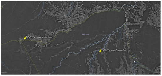 The TIOC Takana–Cavineño was officially recognized by the Bolivian central government in 2007, as 801 people from indigenous communities inhabiting owning some 271,049.5 hectares (Figure 5) [45,90].