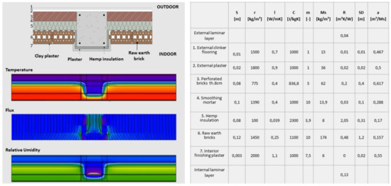 For the different layer distributions, the thermo–hygrometric verifications required for the national regulations were carried out along with the evaluation of the thermal bridges between the various structures and sections (