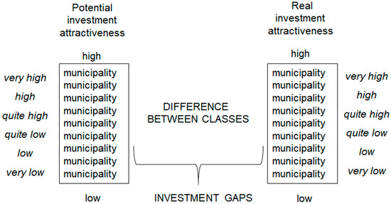 Investment gaps—difference between potential investment attractiveness class and real investments class by municipalities.