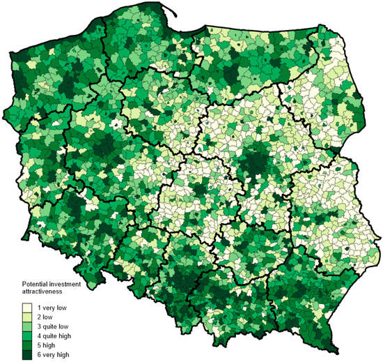 Potential investment attractiveness of Polish municipalities. Source: Author’s own elaboration.