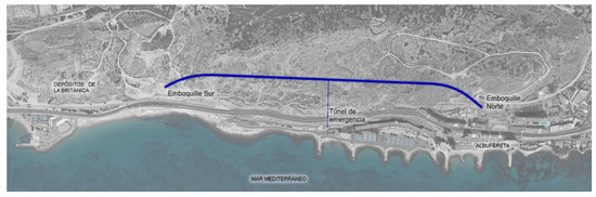 Work on this tunnel began in 2008 but was paralyzed years later and has remained so until day, due to insufficient liquidity to complete the work. As a consequence, the excavation is almost completed, with the absence of the entrance or northern emboquille. Until the end of the work, the line that runs northwards from the center of Alicante takes advantage of the corridor of an old FEVE line, which in the future will be conditioned and equipped as a green area within the project “Landscape and urban integration of the TRAM as it passes through the Serra Grossa” (Figure 8).