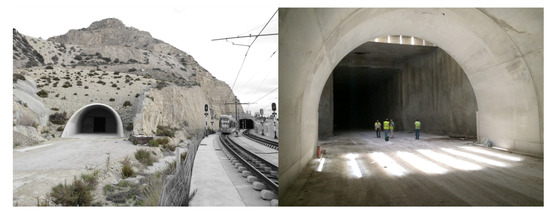 The Serra Grossa is the largest mountain in the center of the city of Alicante. Inside is the railway tunnel, a modern civil infrastructure that forms part of the project to renovate the lines of the Alicante train. This construction belongs to the railway variant of line L1 in the section of Finca Adoc, which connects the city center to the northern part of Alicante province; Campello, Villajoyosa, Benidormm, or Altea (Figure 7).