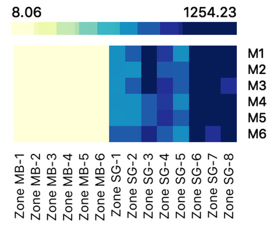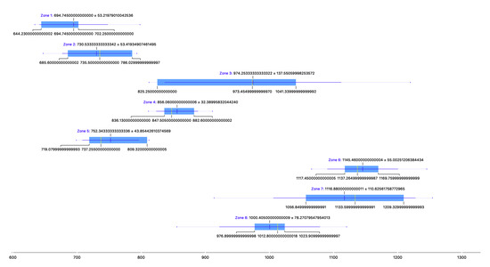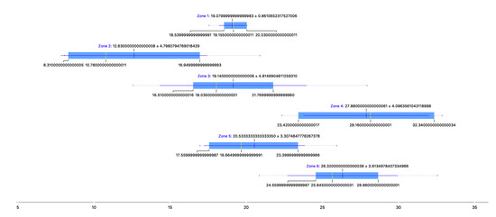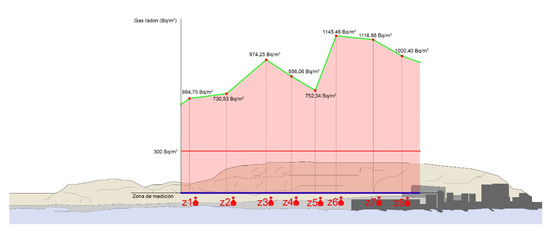 As summarized in Figure 16 and Figure 17, the average values obtained in the different measurement zones comfortably exceed the threshold of 300 Bq/m, established within this study as the value at which it is necessary to take corrective ventilation measures. This installation should not be used by people because its concentration of radon gas is excessively dangerous to their health. In the future, when it comes into operation and with the mechanical means of ventilation, this unhealthy problem will be more than solved [54].