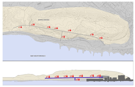 The two tunnels analyzed in the study are located in the two coastal mountains in the city of Alicante: Benacantil Mount and Serra Grossa (Figure 2). The Serra Grossa tunnel in Alicante has similarities with the Benacantil Mount, as both are civil works that respect the slopes of the mountains and have been recently designed. The Serra Grossa tunnel is at a standstill, but the excavation and reinforcement work have been almost entirely conducted, except for the northern emboquille.