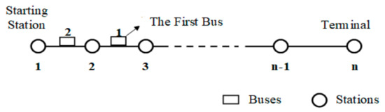 Compared with the bus-skipping strategy, the bus-holding strategy has better practicability and is the most widely studied bus bunching improvement strategy. The holding strategy enables the bus to stay at the station for an appropriate period in order to stabilize the headway. The simplest holding strategy is based on the planned timetable or headway [35]. This kind of strategy implements a holding strategy based on the actual arrival time of the bus, causing the bus to leave the station at the time planned by the timetable or to maintain the planned headway with the front car.