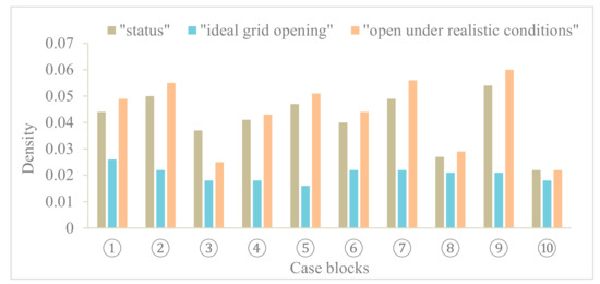 Figure 8 shows the density of the case blocks in three cases: the “status”, “ideal grid opening” and “open under realistic conditions”.