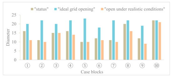 Figure 9 shows the diameter of the case blocks in three cases: the “status”, “ideal grid opening” and "open under realistic conditions".
