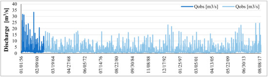 Gapfilled/extended discharge for river Sebwe (1956–2017).