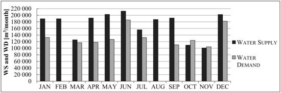 Results highlight a water deficit of 30 percent in the month of March. Also, in the months of October and November, an average water deficit of 40 percent was detected. During the other months of the year, oversupply conditions can be observed.