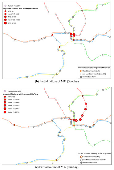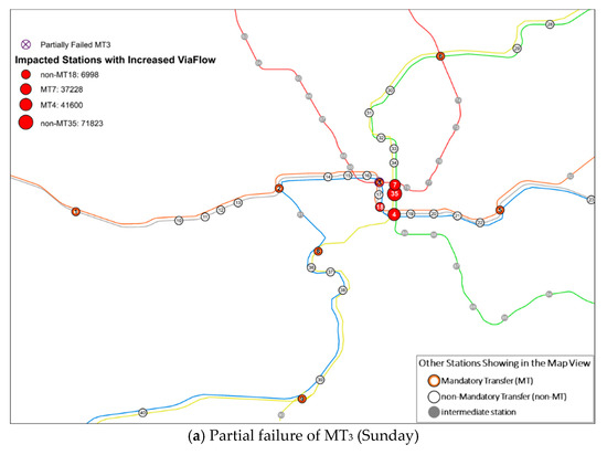 4.2. Computational Results: The Impact of Partial Node Failure of MTs in the WMATA Network