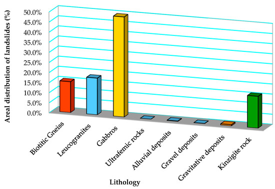 Areal distribution of landslides (%) in relation to the lithological substrate or bedrock (lithology).