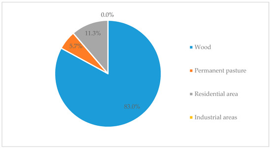 The map classified the areas according to 6 different uses: (1) wood, (2) thin wood, (3) grassland/pastureland, (4) urban fabric, (5) sparse urbanization, and (6) industrial plants. Data showed that the majority (82%) of landslides that occurred during the 1968 event affected wood-covered slopes (Figure 6). However, the current state of knowledge did not allow inference of the impact the wood cover had on the slope stability. Thus, the land use factor was not included in the LSI map elaboration.