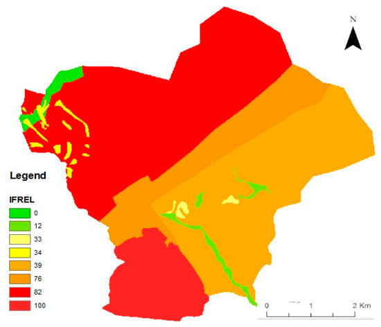 Considering the existence of j different classes, each of them has a relative IF, indicated as IFrel,j. The weight for the j-th class is indicated with wj. Then, the total impact factor, related to landslide susceptibility, indicated as IFtot, is defined as