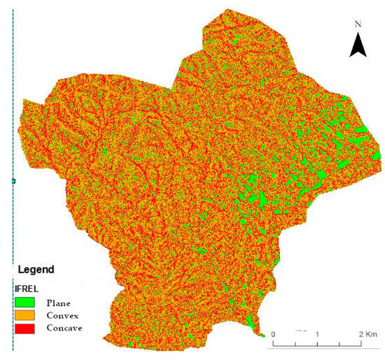 Slope morphology, according to three categories (convex, concave, and plane), was based on the areal ratio between the observed unstable and stable surfaces (Table 4). The relative landslide indexes were identified and mapped (Figure 8).