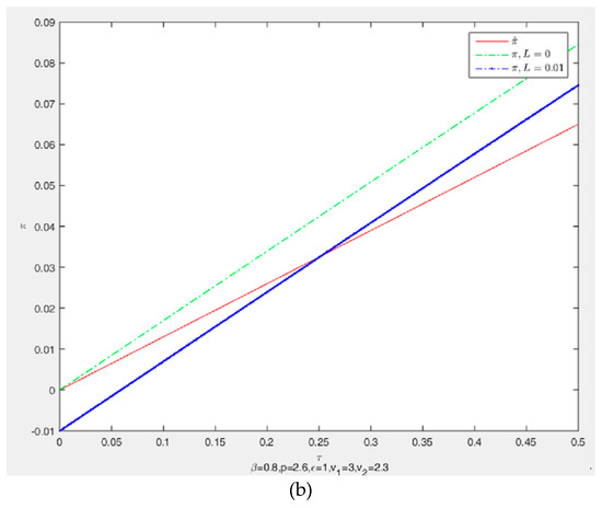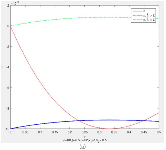 Case 2. When the price satisfies and , we obtain , . We assume that is always sufficiently high, so that , which is assumed hereafter.