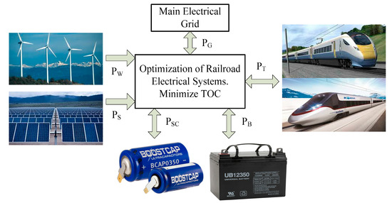 - Aguado, J.A.; Racero, A.J.S.; de la Torre, S. Optimal Operation of Electric Railways with Renewable Energy and Electric Storage Systems. IEEE Trans. Smart Grid 2018, 9, 993–1001. [Google Scholar] [CrossRef]