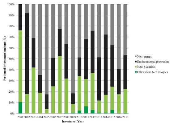 However, some studies suggest that VC firms are not suitable for investing in clean energy industries because investments in the clean energy industry are riskier and offer lower returns than investments in other industries, such as the medical and software industries [21]. In addition, VC backing of clean energy startups faces more risks than other industries, due to regulatory uncertainty, gaps in evaluating skills, the long-term investment period, and risky exit opportunities [32]. Regarding policy risk, Criscuolo and Menon [17] suggested that because the profitability prospects of clean energy startups often depend on public regulation, VC firms face greater policy risks when investing in clean energy startups because environmental policy has proved to be remarkably volatile in many countries. Regarding project evaluation risk, Cumming et al. [33] argued that clean energy investment differs from traditional VC industries by virtue of lack of media exposure and fascination, so as to make it more difficult to evaluate the risk and return tradeoff of clean energy VC investments. Petkova et al. [4] argued that due to the lack of a framework for assessing start-ups in the clean energy industry, VC firms face uncertainty in determining the quality and potential of a particular clean energy startup. Regarding liquidity risk, Gaddy et al. [34] argued that VC firms face higher liquidity risks when investing in clean energy industry, as clean energy companies require a longer payback period, from the earlier stage of technology development to the later stage of technology commercialization. Regarding exit risk, Ghosh and Nanda [3] pointed out that one of the most important risks threatening VC invest in clean energy industry is the inability of VC firms to exit their investments at the appropriate time.
