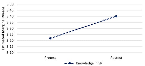 After the hypothesis contrast, significant advances (p minor value) of the dependent variable knowledge in SR were observed. The values of this variable were calculated using the average scores of the four areas of knowledge and the difference between the average scores of the pre- and posttest has an effect size of 0.46 (Table 3).