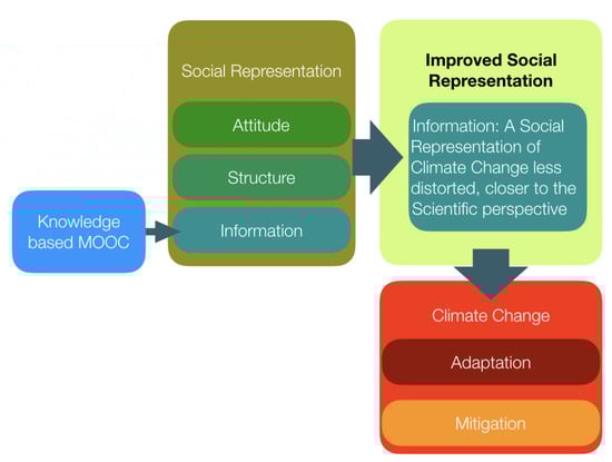 The Social Representation of Climate Change is made of three main components: The information, the structure and the attitude. The main idea of the paper is to act on the information component through a knowledge-based MOOC. By improving this component, we will reach an improved SR closer to the scientific perspective. As the SR is the main driver for mitigation and adaptation, it is expected to also improve these areas.