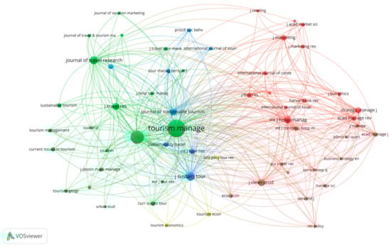 As we can see, the program identifies three main clusters and one residual. Tourism Management is the journal with the most citations (2548) in the green cluster and also the highest link strength (79,693) followed by Annals of Tourism Research (1372 and 48,607, respectively). Regarding the topics of the journals in this cluster, we can see that they are mainly focused on tourism and travel. Journal of Sustainable Tourism (606 and 23,034, respectively) leads the blue cluster, which is mostly focused on sustainability; and in the red cluster, which is made up of management journals, we have International Journal of Hospitality Management, with 422 citations and a total link strength of 16,555.