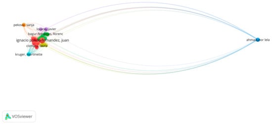 The analysis of the networks can be used to create a graphic map of the relationships between the data []. We use VOSviewer software [] to visualize the bibliometric analysis of the publications. The technique is based on the use of nodes and lines (links). Nodes can represent authors, journals, countries, institutions, references, and keywords. Links between nodes can show citations, co-citations, collaboration, and co-occurrence. The analysis of clusters may show networks, helping to reveal groups and trends []. We thus display keyword co-occurrence; co-citation of cited references; journal co-citation; author co-citation; bibliographic coupling of authors; and co-authorship links between researchers, countries, or institutions.
