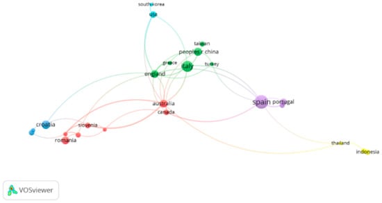 Regarding the analysis of co-authorship relationships between countries for TCSD, there are six clusters, headed up by Australia, England, Croatia, Thailand, Spain, and the United States. It can be seen that the different clusters are relatively far apart from each other, indicating a less collaborative relationship. Finally, the analysis of the co-authorship network of institutions for TCSD shows only eight universities organized into three clusters, headed up by Griffith University in Australia, the University of Ljubljana in Slovenia and the University of Technology Sydney in Australia. Particularly notable is the role played by Australian universities both in collaboration with universities from other countries and among national universities.