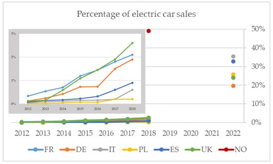 The comparison of historical data with expectations made in 2012 with a decade later shows that such expectations were rather optimistic. Although there are still some years to reach 2022, it seems rather unlikely that electric car sales share in the six countries will exhibit the growth needed to meet the expectations. However, when one compares those expectations with the market share electric cars recently achieved in Norway, it seems that the expectations declared by respondents in high-income countries were not completely unrealistic.