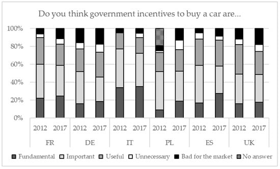 Importance of public incentives for promoting electric car purchase (reported in percentage). Source: adapted from [27] and survey results.