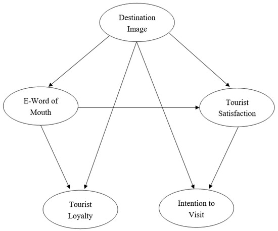 Destination image refers to a traveler’s intention to depend on the capability of a spot to do its functions regarding advertising. In other words, assuring visitors that the services provided will be reliable, hassle-free, and transparent [67]. Potential travelers are more likely to seek information regarding destination images from their colleagues, relatives, and friends who have had experience with the destination [68]. This is due to eWOM comforting customers by messages, enacting assurances, and reducing uncertainty and fear [67]. Mazursky [69] and Babakus and Mangold [70] defined that eWOM messages are a primary source to eliminate the element of risk and uncertainty for potential purchase concerning products or services. The essential impact of eWOM on tourist behavioral intentions could be stronger than the traditional WOM [50].