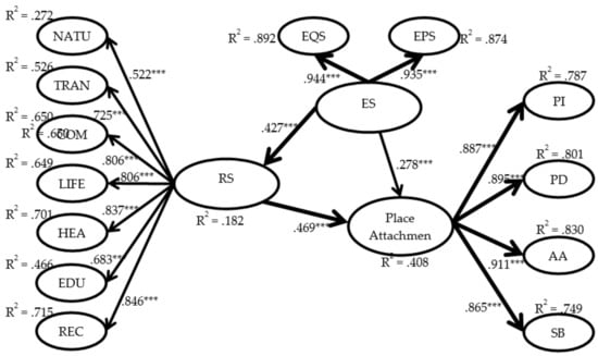 | RS → Place Attachment | 0.469 *** | 14.110 | 0.403 | 0.537 |