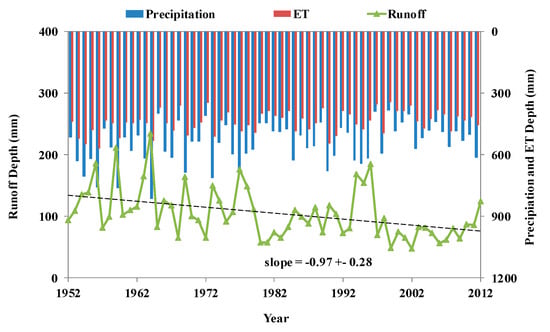 - Bao, Z.; Zhang, J.; Wang, G.; Fu, G.; He, R.; Yan, X.; Jin, J.; Liu, Y.; Zhang, A. Attribution for decreasing streamflow of the Haihe River basin, northern China Climate variability or human activities. J. Hydrol. 2012, 460, 117–129. [Google Scholar] [CrossRef]