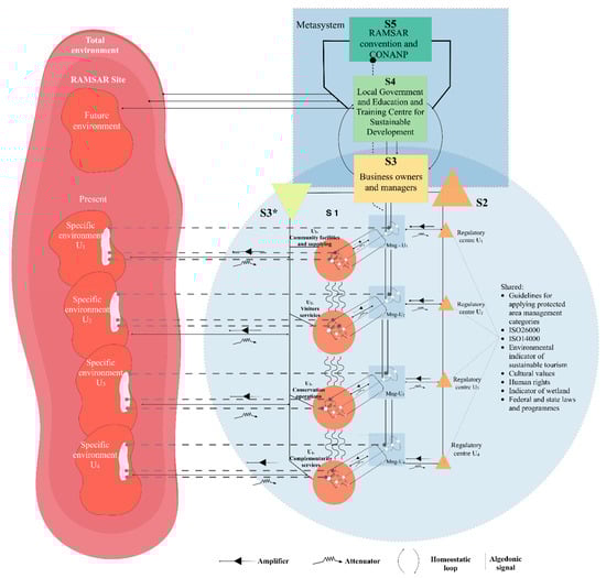 VSM for RAMSAR sites. Source: based on Beer []. * Interactions are presented with the connections suggested by the author for promoting sustainable performance. It should be noted that the S1 (corresponding to the Pac variable) responds to a specific environment and suggests its support functions.
