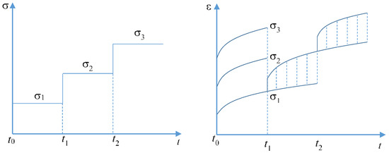 Diagrammatic sketch of loading on uniaxial creep test and the data processing of the strain–time curve.