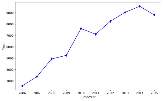 In order to promote sustainable development and green growth, according to the China–US Joint Statement on Climate Change issued by the 22nd APEC Economic Leaders’ Meeting in November 2014, the Chinese government promised to stop increasing carbon dioxide emissions by 2030 [5]. Generally, governments around the world use environmental regulations to regulate the sustainable development of enterprises [6]. For instance, the government has enacted environmental regulations to reduce pollutant emissions, including command and control policies and market-related policies [7]. In 2013, it issued the Action Plan for Air Pollution Prevention and Control. In 2014, the Environmental Protection Law of the People’s Republic of China was amended, and the most stringent environmental protection law in Chinese history was officially implemented on 1 January 2015. Additionally, the Chinese government has taken some policy measures to break this development bottleneck, such as energy conservation assessment (ECA) and environmental impact assessment (EIA) [8]. Thus, the creation of a resource-saving and environment-friendly society are imperative. Besides, when formulating environmental policies, the government attaches great importance to the relationship between technological progress and the environment, which is expected that technical innovation will play an important role in solving environmental problems while maintaining productivity growth [9]. In addition to that, the total investment for industrial environmental pollution control has also maintained a rising trend to achieve sustainable development, as shown in Figure 1 (China Statistical Yearbook). Furthermore, we learned from a World Bank survey that China’s environmental costs have reached 12% of GDP.