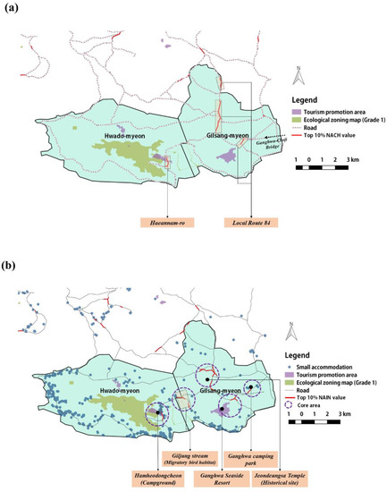 4.2. Understanding Spatial Networks of Ganghwa County at Different Scales