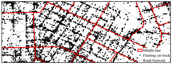 Urban blocks have received increasing attention in urban research [33,34,35]. This paper selected the traffic community as the research unit based on the concept of urban block. Because the traffic community has a set of similar traffic characteristics and traffic associations within a definite region, and the division of the traffic community is coordinated with the census cell boundary [36]. The main roads within the study region were used to partition it into research units. Since the floating vehicle trajectory data is distributed on both sides of the road, the middle line of the extracted main roads was used as community boundaries, and the redundant part was manually modified as shown in Figure 4, with 612 traffic communities obtained. The region of traffic communities between the first ring of the third ring traffic community is getting bigger and bigger, which is consistent with the increasingly sparse high-level roads in Chengdu.