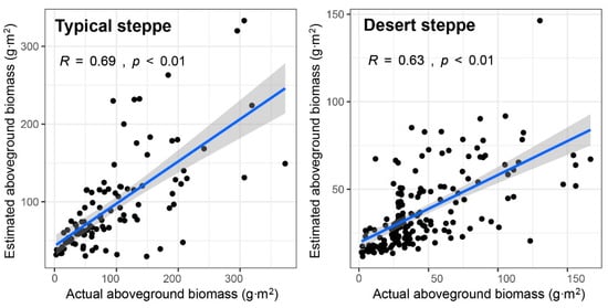 Relationship between estimated and actual AGB of typical/desert steppe.