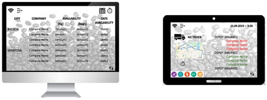 Figure 5 shows the interfaces of the remote located monitor where data from the companies are collected, in terms of the available quantities and the date in which these quantities are ready to be collected. The second part of the figure shows the screen of the tablet in which the operator has at his disposal the route he has to cover in a given day to optimize the collection process.