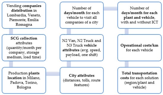 To sum up the development of the logistics model, the flowchart in Figure 6 reports the different steps of the procedure.