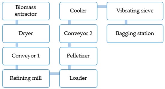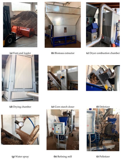 Once the process steps of the production of wood pellets has been defined, it is necessary to provide some more details inherent in the machinery that carries out these transformations and passages in Figure 7 and Figure 8.