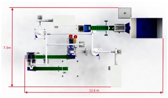 The layout and size of the plant, and thus the hosting building, have been provided by Smartwood S.r.l.; a possible scheme is proposed in Figure 9 and Figure 10.