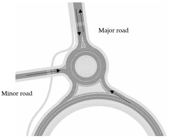 For roundabouts, two approaches are to be verified for each entry, the first with the vehicles circulating and the second for those entering. These stream distances were verified according to Equations (3) and (4),