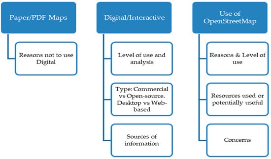 For those participants replying positively to the use of maps, the subsequent phase of the questionnaire explored the type of maps considering the format used, as described in Figure 2. A full description of the questionnaire may be found in Supplementary Materials.