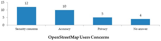 Concerns among the users of OpenStreetMap representing the number of participants.