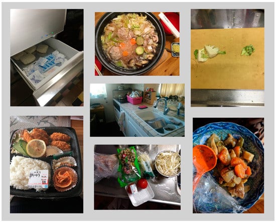 Even though Japanese are known for their appreciation for aesthetics and demand for high quality [], our participants were not that strict with the flawlessness of the food at home. Perhaps guided by the idea of mottainai, the participants used all edible parts of wilted vegetables and consumed expired products if they appeared safe to eat. The participants’ posts demonstrated that wasting food was considered wrong and the efficient use of ingredients was desirable, even an issue to be proud of. Most of the participants considered leftovers and surplus foods as similar to other foods and were used to eating them. Some participants froze leftovers or ingredients such as extra meat so that they would not get spoilt and could be used when needed. Some of the participants discussed how the tasks had made them pay more attention to their food waste. Many were also happy about how little food waste they actually produced.
