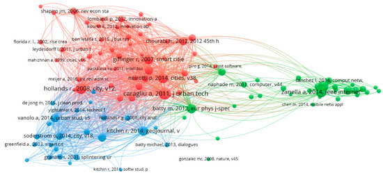 | 1 (red) | “Smart cities in Europe” | Caragliu et al. [3] | Journal of Urban Technology | 1049 |