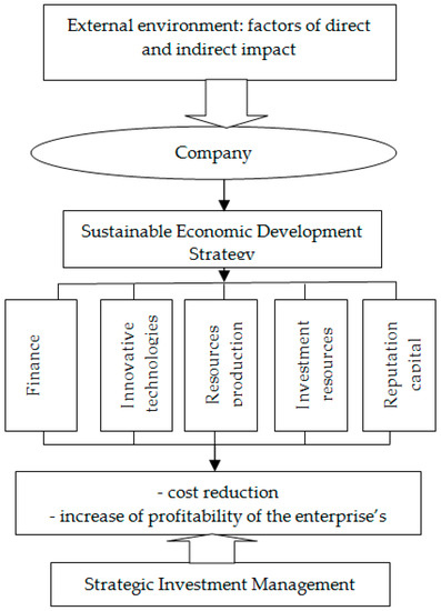 The proposed model of the mutual influence of the investment management of a company and the sustainable economic development of the industrial enterprise is presented in Figure 1.
