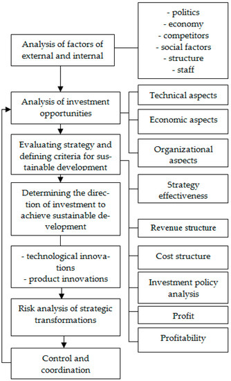 The process of sustainable economic development is considered in foreign and domestic theoretical studies as a complex, multidimensional and rigidly structured phenomenon, based on the consideration and analysis of a large number of factors. Based on this, within the framework of achieving sustainability of an industrial enterprise, the following algorithm is proposed for improving strategic investment management, which may include a sequence of the following main steps.