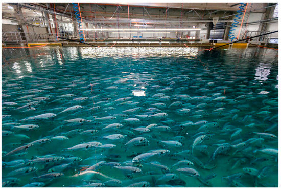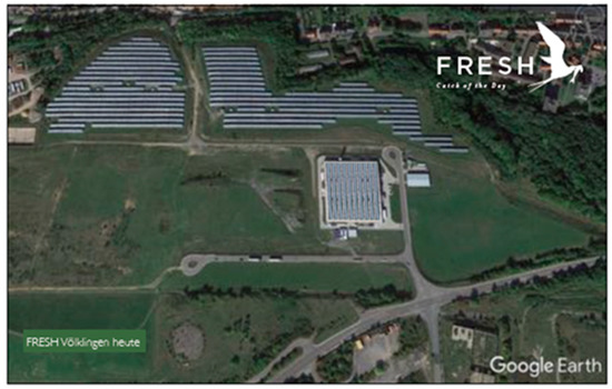 The plant utilizes several innovative measures, and from the beginning, its operation is accompanied by an on-site research hub operated by the University of Applied Sciences of Saarland, and a specifically created chair for Aquaculture. The aquaculture plant comprises four large fish water pools and operates in a resource-conscious mode based on closed-looped biological purification (see Figure 1). Almost 100% of the energy is generated by solar-, wind- and hydropower (interview with the staff of the fish farm, November 2017). The aquaculture includes four large fish water pools and uses the resources in closed-looped biological purification. The Fresh Völklingen system is designed for an annual production of 500–700 tons of fish. A further extension of the fish farm is possible as adjacent areas are already reserved for this purpose (interview with staff of the fish farm, November 2017).