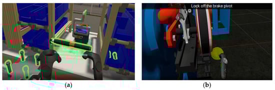 Demonstration of virtual training in practice. (a) Virtual training for assembly; (b) Virtual training for coil change.